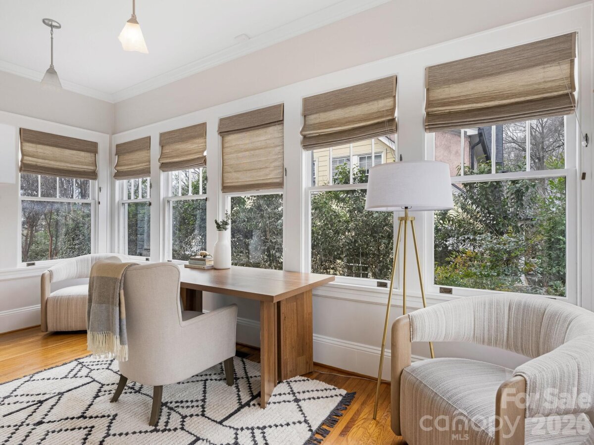 Charming Myers Park home on a great, friendly street convenient to everything. Updated kitchen with high end appliances, hardwoods upstairs and down, built-in banquet in breakfast room, sun room suitable for office, spacious living and dining rooms, detached 2-car garage, storage shed, and patio area in back. Large deep lot with plenty of room to play and relax, and possibilities to expand. Don't miss this one!
