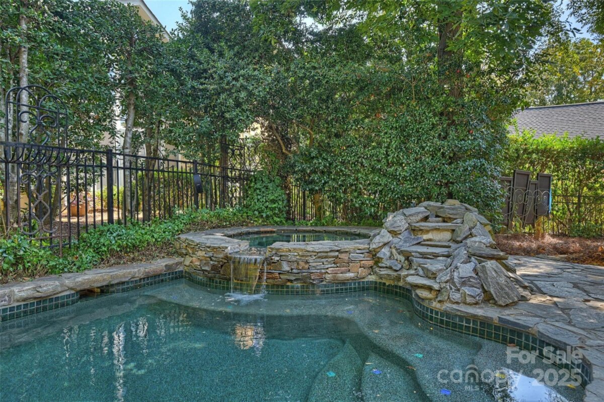 Welcome to a home where timeless elegance meets thoughtful details in a sought after section of Piper Glen in Linkside Village! From the moment you arrive, you’ll notice the care and craftsmanship that make this home special. Step inside and you’re immediately greeted by a soaring 2-story great room with a cozy gas fireplace—a perfect spot to gather with family and friends. Daube crown molding and plantation shutters run throughout the home, adding charm and refinement at every turn. Built-in book shelving with cabinets and granite countertops provide both beauty and function. The first-floor primary suite is a true retreat. Relax by the glass-enclosed fireplace in the sitting area, or unwind in the spa-inspired bath featuring a frameless shower with dual spray heads and a built-in seat. The kitchen is a chef’s delight with granite countertops, a gas cooktop with disappearing exhaust fan, and a refrigerator with glass door. Enjoy casual meals under the vaulted Pecky Cypress ceiling in the breakfast nook—a unique touch that adds warmth and character. Upstairs, the secondary bedrooms are spacious and connected by a Jack & Jill bath with separate sinks and a tub, offering both convenience and privacy. Outside is where this home truly shines. Entertain or unwind in your own private oasis featuring a 30-foot pebble sheen pool with spa, waterfall, and seating areas, all surrounded by stone coping. A brick patio, gas grill, and gas lanterns set the perfect backdrop for outdoor living, while speakers let you set the mood. The fenced backyard offers both beauty and function with brick and stone pathways leading from the front to the back. The exterior also boasts gutter guards for easy upkeep. This home is as inviting as it is impressive—perfectly designed for both relaxing and entertaining.