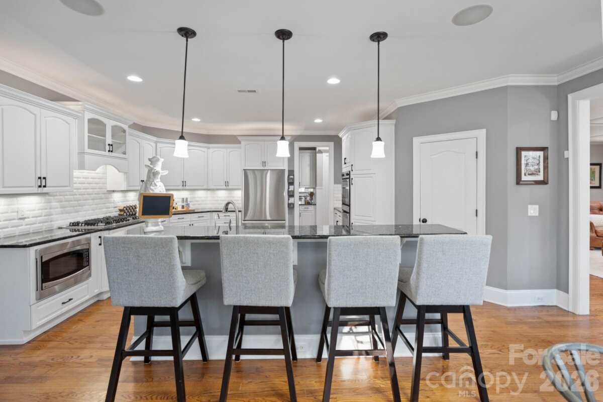 This truly one-of-a-kind home blends a thoughtful design, generous scale, and an amenity-rich lifestyle that’s hard to match. Located in The Farms, one of Mooresville’s most sought-after communities, this home has 4,665 square feet, five bedrooms, and a layout rarely found. It offers everyday comfort with standout spaces for work, play, and entertaining. Wide, open living areas are filled with natural light and flow effortlessly for both daily living and hosting. The main level is the heart of the home, featuring four bedrooms and three full bathrooms on the primary floor, including a spacious primary suite designed for privacy and ease. Bedrooms #3 and #4 have been reconfigured into a huge suite that will provide the ultimate in privacy for multigenerational living, or can be used as a guest suite to pamper friends & family...so fantastic that they may never want to leave! (the current layout could easily be changed back to its original “Jack n’ Jill†configuration) Upstairs, a fifth bedroom with its own ensuite bathroom offers yet another great private living space. A large dedicated office upstairs provides ample peace & quiet when needed, while neighboring rooms like the media room with its own attached pub/bar can take entertaining to the next level, creating the perfect setting for game nights, celebrations, or relaxed evenings with friends. With a total of four full baths and two half baths, the home is well-equipped for busy households while still providing many options for privacy. Every space has been designed with intention, offering both functionality and a sense of distinction that sets this property apart. Outside also provides a wonderful entertaining space. You and your guests can enjoy the large deck, or just a few steps away you’re lead down to a custom stone & brick patio with a wood burning fire pit and a 12’ x 20’ gazebo with a 55†TV, Bluetooth ready sound system & custom lighting all inside of the expansive, flat and fenced backyard. Beyond the home itself, The Farms delivers an exceptional lifestyle. Residents enjoy resort-style amenities including a community pool, lighted tennis courts, and dedicated pickleball courts, sand volleyball, soccer field, playground, and a covered recreation and dining area with outdoor kitchens—all fostering a vibrant, social atmosphere in a beautifully maintained setting. This is a rare opportunity to own a home that combines a highly desirable floor plan, upscale living, and one of Mooresville’s most dynamic communities. A property that truly stands apart, inside and out.