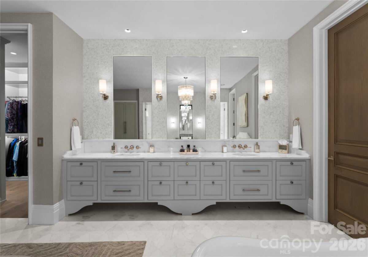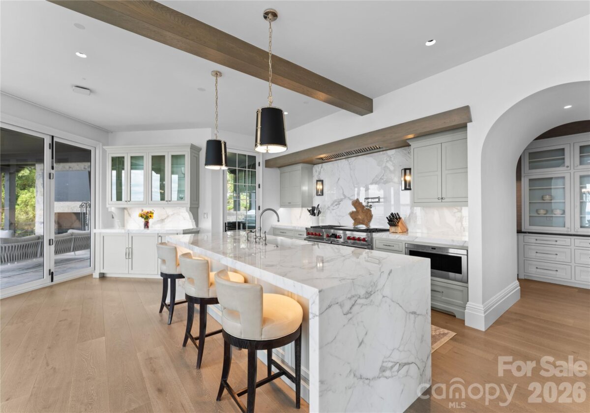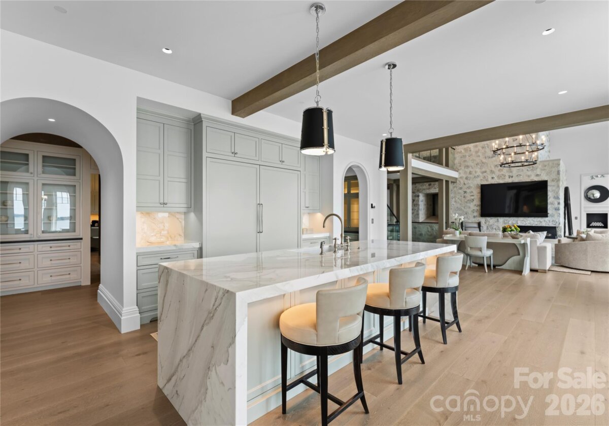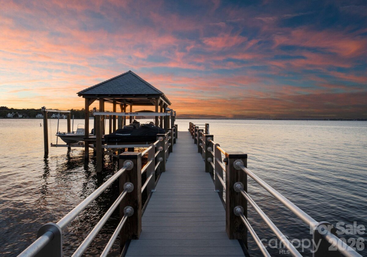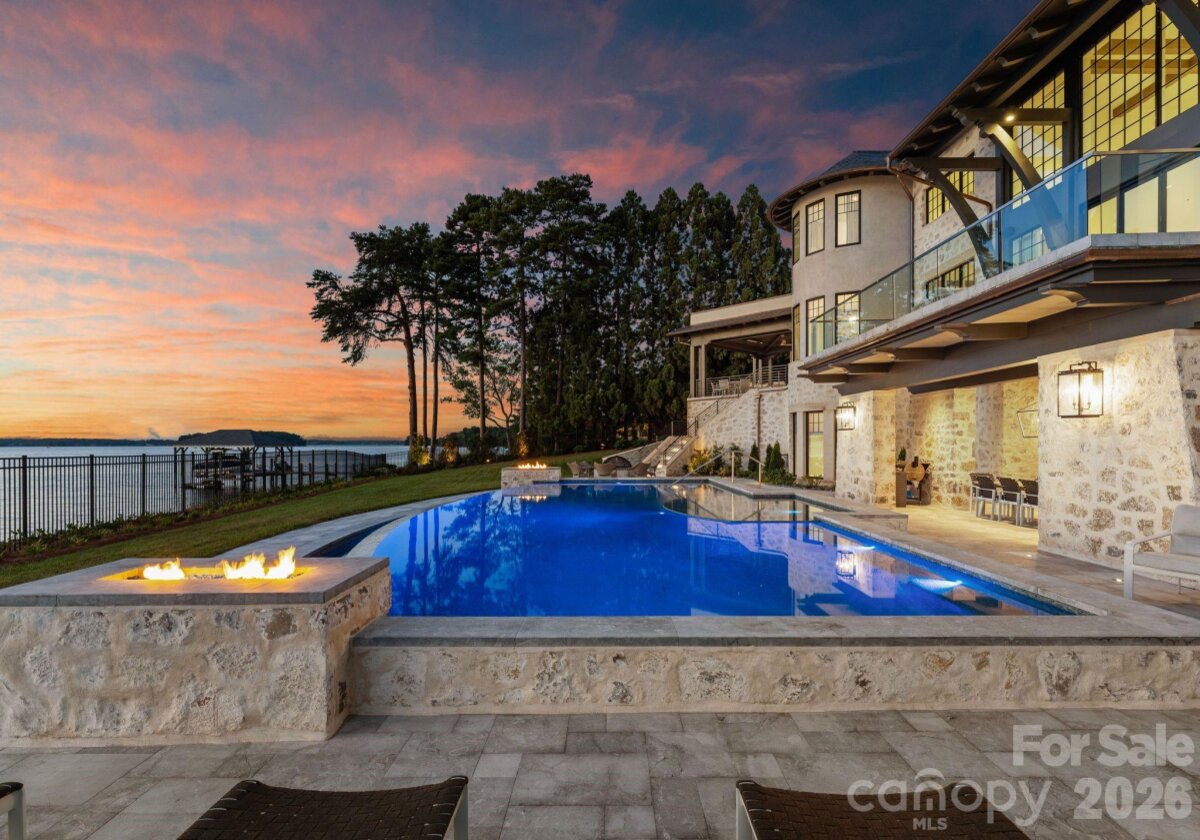 Experience a level of lakefront living where architecture, setting, and design exist in effortless harmony. Set along the shores of Lake Norman, this meticulously crafted estate captures long-range, year-round water views and a sense of quiet grandeur from the moment of arrival. A dramatic two-story foyer unfolds into a grand salon, where walls of glass and fold-away doors open to expansive terraces, blending indoor and outdoor living. Light moves throughout, highlighting refined finishes and thoughtfully curated spaces. At the heart of the home, a chef’s kitchen of exceptional scale features dual islands, a fully appointed scullery, and integrated appliances—designed for both gathering and precision. A covered lakeside terrace extends just beyond, complete with a fireplace, ceiling-mounted heaters, and an outdoor kitchen with Wolf grilling. The main level is anchored by a private primary suite, thoughtfully positioned as a true retreat, offering serene lake views and a spa-inspired bath with elevated finishes and a sense of quiet separation from the rest of the home. Additional bedroom suites are thoughtfully arranged across all levels, including a main-level guest suite, a lake-level suite, and three expansive upper-level bedrooms—each designed with the scale and comfort of a private retreat, featuring walk-in closets and ensuite baths. Laundry on every level and elevator access throughout further enhance everyday ease. The lake level is designed for both relaxation and recreation, featuring a full kitchen, golf simulator, fitness studio, sauna, and wine cellar. Outdoors, a resort-style setting unfolds with an infinity-edge pool and spa, fire features, and multiple gathering spaces oriented toward the water. A private dock with dual slips and personal watercraft lifts provides immediate access to the lake. Enhanced by Control4 smart home technology, the residence offers a seamless blend of sophistication and modern convenience. Offered fully furnished with interiors curated by David Smith Interiors, along with a pontoon boat and two PWCs. Opportunity to acquire membership to The Peninsula Club further elevates the lifestyle.