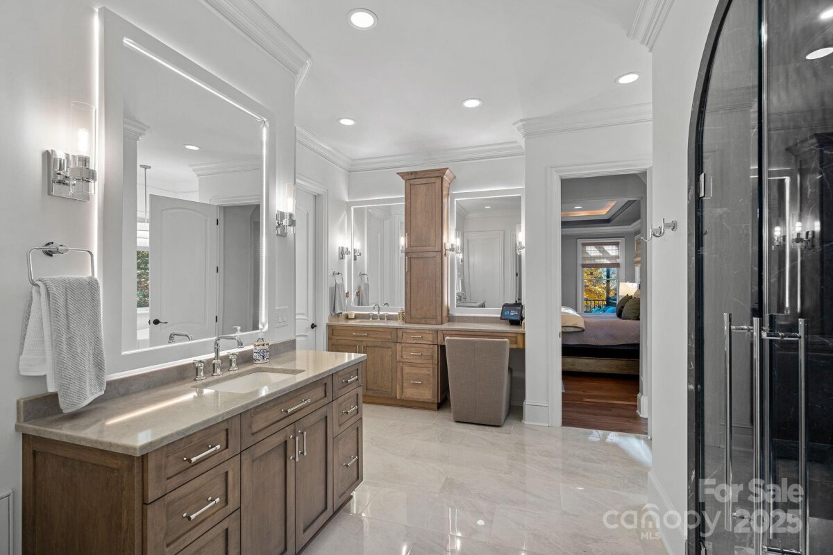 This stunning golf course estate offers the ultimate luxury lifestyle, delivering both a Deeded Boat Slip and Trump National Golf Club access right to your doorstep perfectly complementing the stunning golf course views overlooking the TNGC 11th Hole that define this premier property. Set on a double, well-manicured 1.55-acre lot, this home boasts exquisite features inside and out. Enjoy year-round entertaining with a newly built heated saltwater pool and spa and an extensive travertine patio. The home itself is designed for grand living, featuring an incredible 4-car garage configuration (attached 2-car plus a detached two-level garage with workshop), and a stately circular driveway leading to an inviting flagstone porch. Inside, discover a beautifully updated space with wide plank walnut hardwood floors throughout the main level, soaring 10-foot ceilings and 8-foot doors, and high-end finishes like stacked crown molding. A dedicated Wet Bar, a Two-Story Great Room with a massive stacked stone fireplace, and an executive Office are just a few of the highlights. The Gourmet Kitchen was recently refreshed showcases a magnificent book-matched granite island, commercial-grade gas cooktop, and premium appliances. Retreat to the luxurious Owner's Suite, featuring a large balcony access and a brand-new, $100,000+ primary bathroom. This spa-like retreat boasts real wood his-and-her vanities with stylish counters, custom back-lit picture-framed mirrors, a freestanding soaking tub, and a country club-sized steam shower with elegant glass arched doors, a rain head system, and dual shower heads, all surrounded by gorgeous tile and a wrap-around floating bench. The suite is completed by separate his & hers custom walk-in closets. The Upper Level is equally impressive, boasting three generously sized bedrooms, a spacious Bonus Room, and a second office/Flex Room. The Lower Level is an entertainer's dream, complete with a Billiard/Recreation Room, Family Room with a stone fireplace, and a Fifth Bedroom/Bonus Room. The lower level features multi generational private Second Living Quarters with a full kitchen, bedroom, bath, and separate entrance.