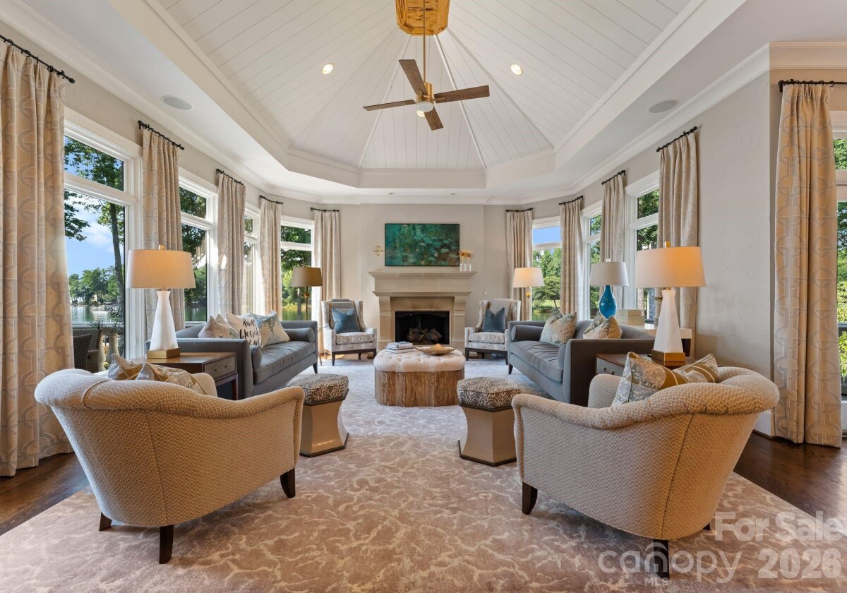 Welcome to "Villa Bianca," an extraordinary waterfront estate nestled within The Point on Lake Norman. Set on nearly an acre with sweeping, year-round water and golf course views, this timeless white-stucco residence makes an unforgettable first impression from the moment you arrive. Inside, soaring ceilings, refined architectural details, and beautifully curated finishes create an atmosphere of effortless elegance. The primary suite is conveniently located on the main level, offering a serene retreat with spa-like comforts. At the heart of the home, a true chef’s kitchen features custom cabinetry, an oversized island, and top-of-the-line appliances—seamlessly flowing into expansive living and dining spaces designed for both everyday living and elevated entertaining. Upstairs, generously sized bedrooms, a private study, a cozy library, and a spacious bonus room provide flexibility and comfort. The fully finished walk-out basement is an entertainer’s dream, complete with a second full kitchen, recreation and living areas, and a home theater—perfect for hosting guests or creating a private retreat. Step outside to your own resort-style escape, where breathtaking sunsets frame Lake Norman and the surrounding golf course. Enjoy the in-ground pool and spa, multiple outdoor living spaces, and a private dock with boat lift, offering effortless access to lake life at its finest. Located in one of Lake Norman’s most coveted communities, residents of The Point enjoy world-class amenities including golf, tennis, fitness, walking trails, and lake access—just minutes from dining, shopping, and Charlotte. A rare offering of timeless architecture, refined luxury, and unmatched lifestyle—Villa Bianca is truly one of one.