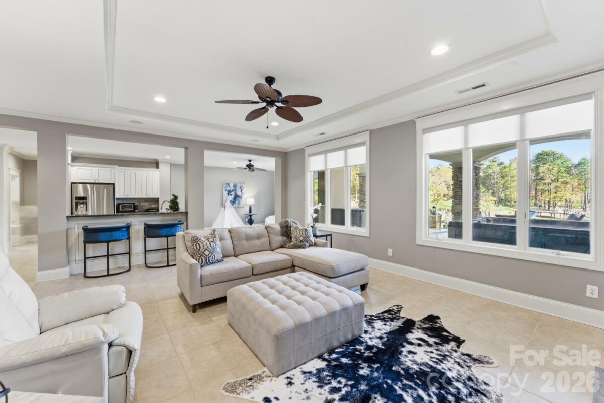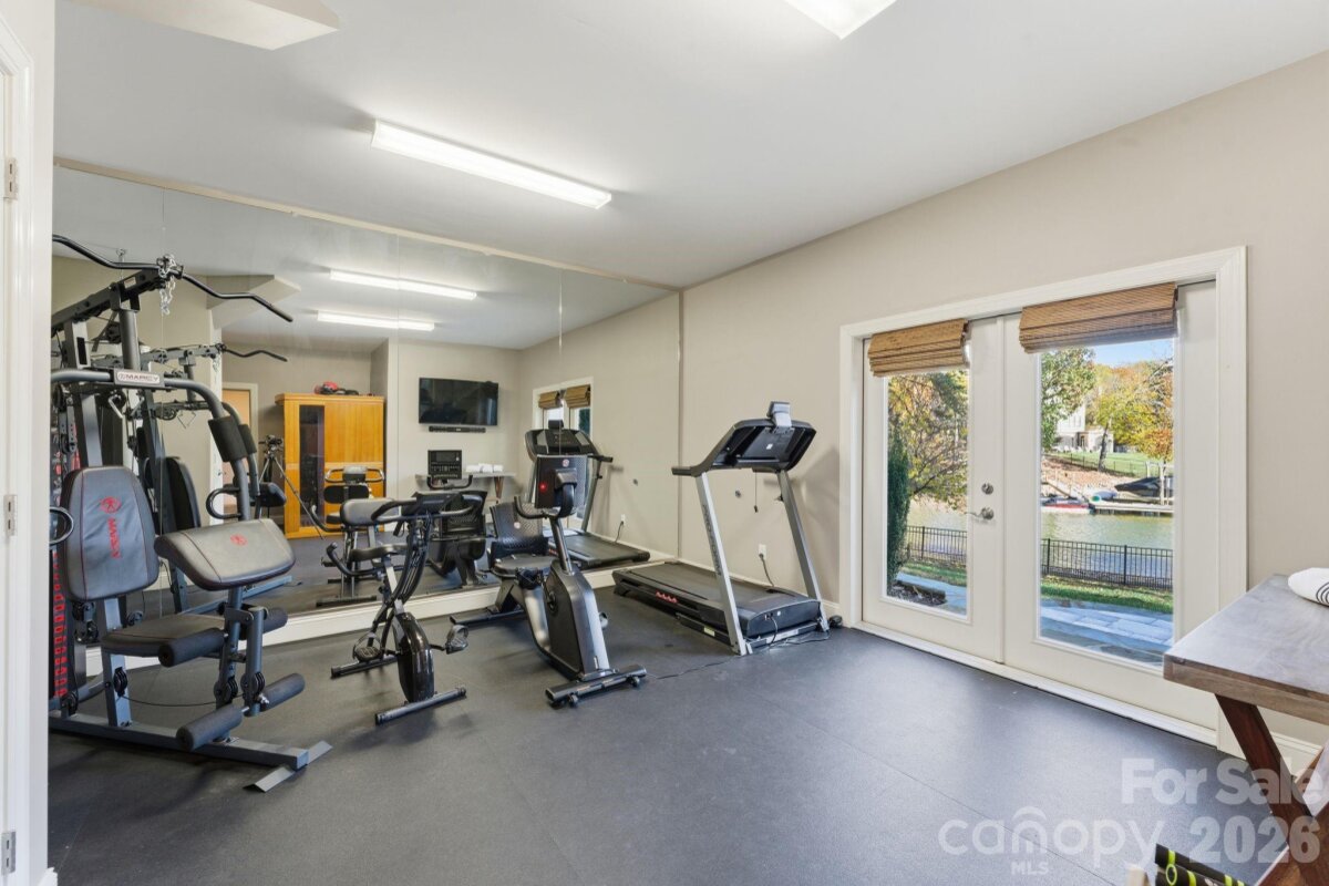Experience the pinnacle of Lake Norman living in this stunningly reimagined estate, perfectly positioned within the prestigious community of The Point at Trump National Golf Course. This meticulously maintained stucco and stone residence has been transformed into a private resort experience, blending sophisticated modern updates with an unmatched waterfront lifestyle. The exterior serves as a true sanctuary, featuring a rare private sandy beach and a newly rebuilt dock complete with a dedicated sitting area and boat lift. Whether you are hosting on the expansive new balcony finished with Montalcino porcelain tile or relaxing on the travertine patio by the outdoor kitchen and hot tub, the home is designed to maximize its commanding water views and exceptional privacy. The interior reflects a commitment to high-end design, beginning with an inviting foyer that leads to an executive office featuring a gas fireplace and an elegant coffered ceiling. The heart of the home opens into a soaring two-story great room with a floor-to-ceiling stone fireplace and abundant natural light. The upscale kitchen is a culinary showpiece, featuring stylish quartz counters, coffered ceilings, and a premium appliance suite including a Wolf cooktop, double oven, and a built-in microwave drawer. This space flows seamlessly into the breakfast area and a formal dining room serviced by a refined butler’s pantry. The main-level owner’s suite serves as a luxurious retreat, offering a private Juliet balcony overlooking the lake and a newly completed spa-like bathroom. This sanctuary is outfitted with dual quartz vanities, a sleek glass shower, a soaking tub, and elegant herringbone tile floors with radiant heating. Upstairs, the home continues to impress with new hardwood flooring throughout, three spacious bedrooms with updated baths, a large bonus room, and a versatile loft space perfect for a home workstation. The walk-out lake level is an entertainer’s dream, featuring an expansive family room anchored by a cozy fireplace and a fully equipped second kitchen and bar. This level also includes a billiard area, plenty of storage for lake essentials, and a dedicated theater room for cinematic experiences at home. Wellness is prioritized with a private exercise room and sauna, alongside a fifth guest bedroom. This property has been curated for those seeking the ultimate in gracious lakefront living, complete with a whole-house generator installed in 2024 for total peace of mind.